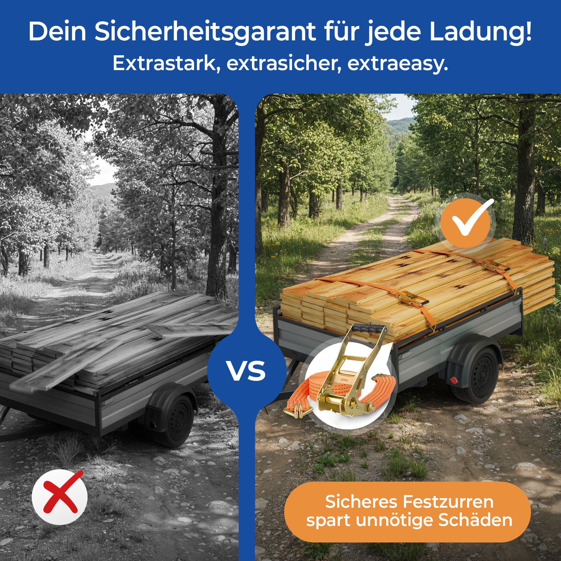 Perfekt für Transporteure, Handwerker oder private Anwendungen. Ideal zur sicheren Befestigung von Ladungen bei allen Transportarten.